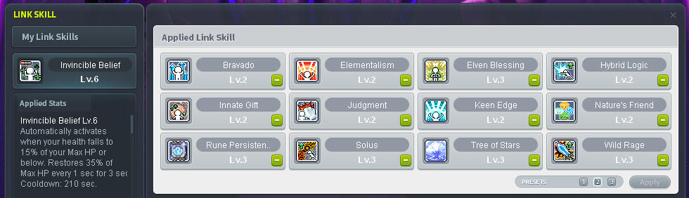 Guide Note: Hero's auto-buff skills can be slotted using only two pets; rotate Decent Holy Symbol with another skill while mobbing and rotate back while bossing. If using three pets, you're left with an extra slot. The (BLANK)* slot can be used for Decent Hyper Body (if you care to use it) or Weapon Aura. As of GMS v263, Weapon Aura can be auto-buffed. This can be useful for culvert, dojo, or instances where you won't run out of charges but not recommended for bossing.